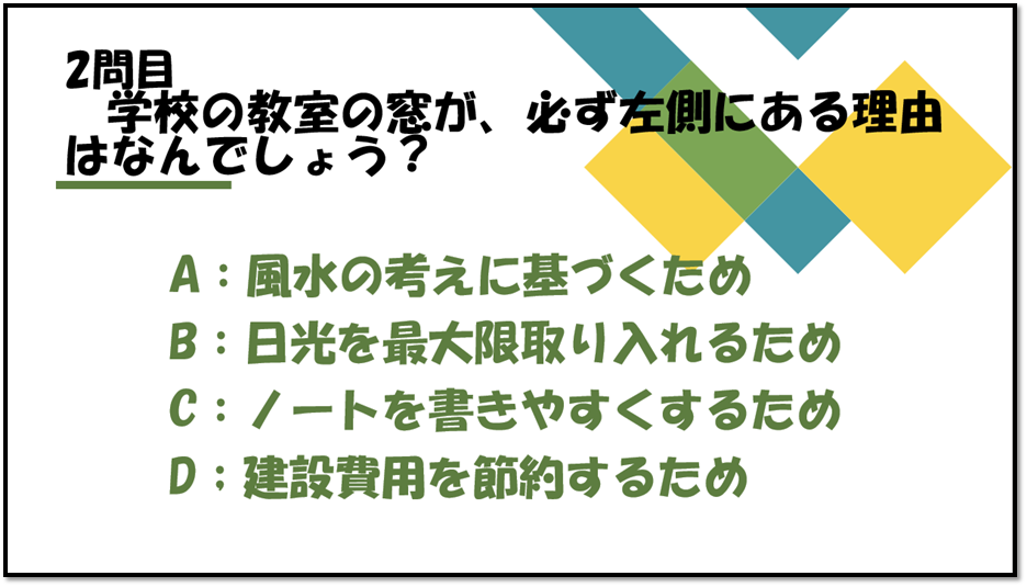 さて、リラクスでは今週、学校にまつわるクイズを開催しました。